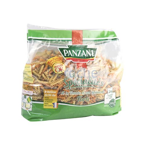 40 % de pâtes de qualité supérieure ( semoule de blé dur de qualité supérieure ), 30 % de pâtes aromatisées à la tomate ( semoule de blé dur de qualité supérieure, concentré de tomate 7,9% ), 30 % de pâtes aromatisées aux épinards ( semoule de blé dur de qualité supérieure, 1,6 % de poudre d'épinards ).