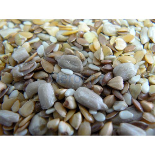 Graines de sésame non pelées 24,99%, graines de millet pelées 24,98%, graines de lin brun, graines de tournesol 12,49%, graines de sarrasin pelées.